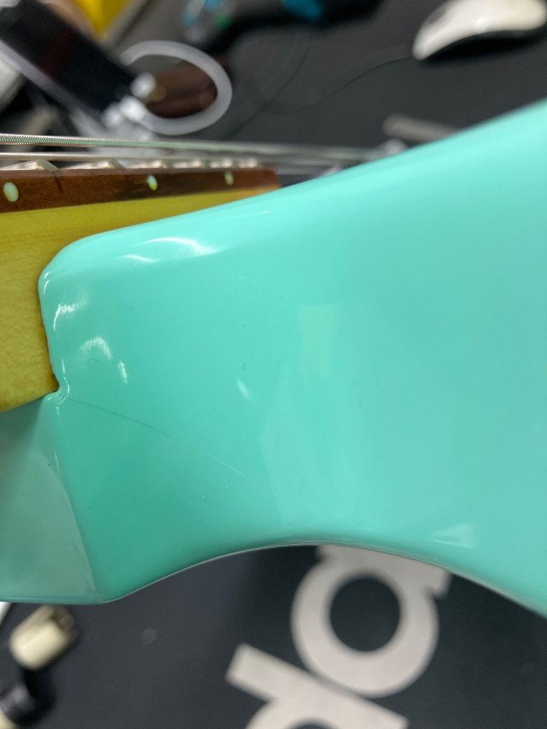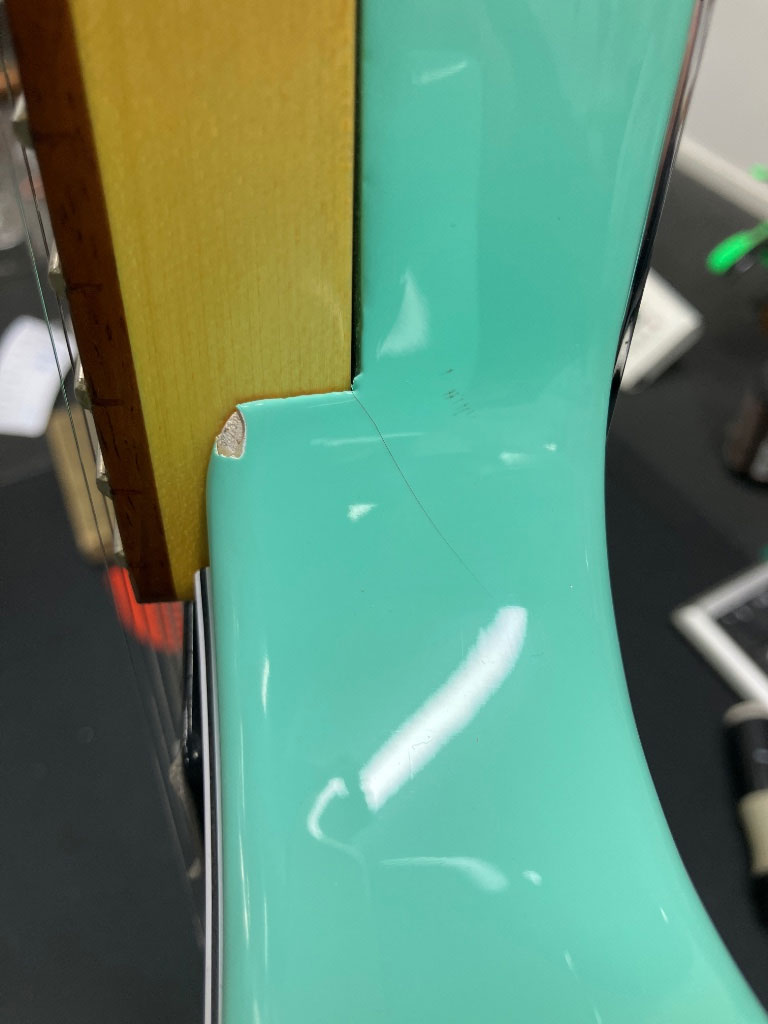 Détails du produit Stock-B : éclat vernis, bois : ECLAT vernis jonction corps/manche SUP ET INF , rayures, traces de jeu/EMB